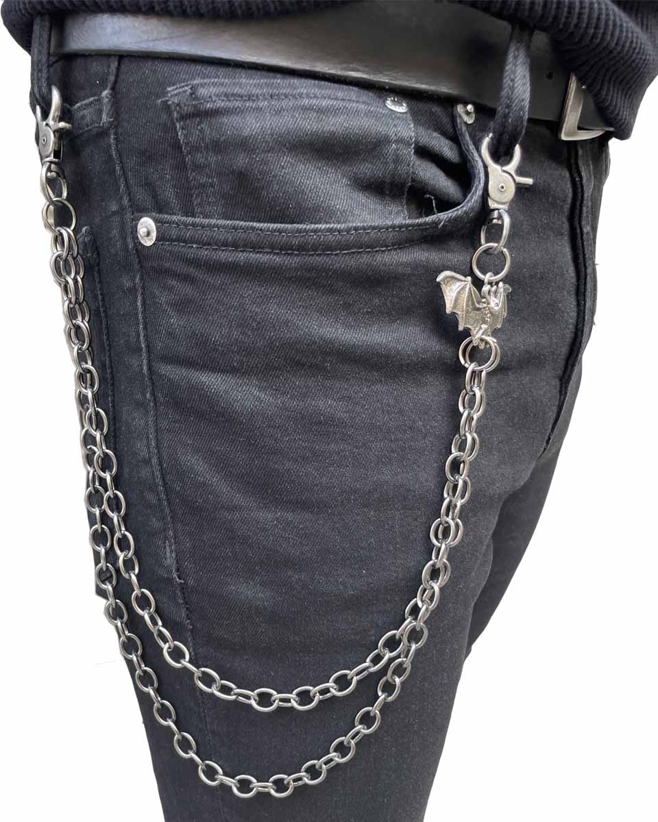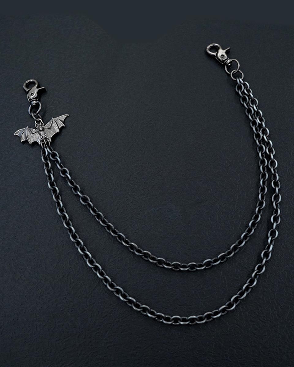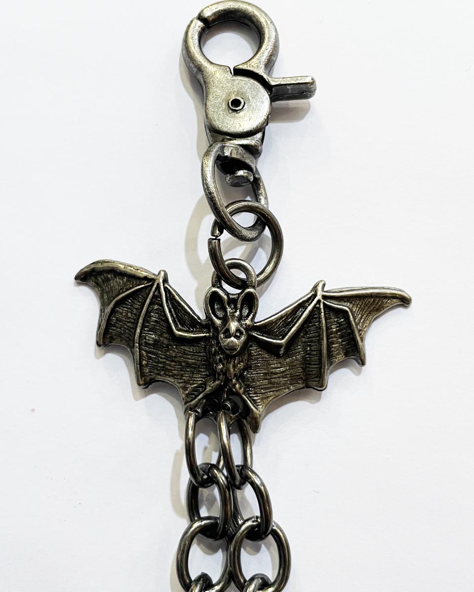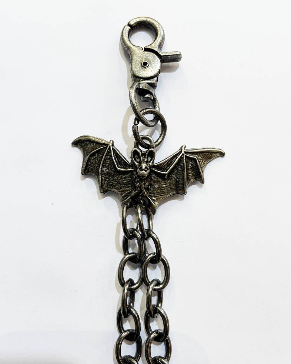 Cool nyckelkedja med två kedjor och en liten fladdermus i metall.