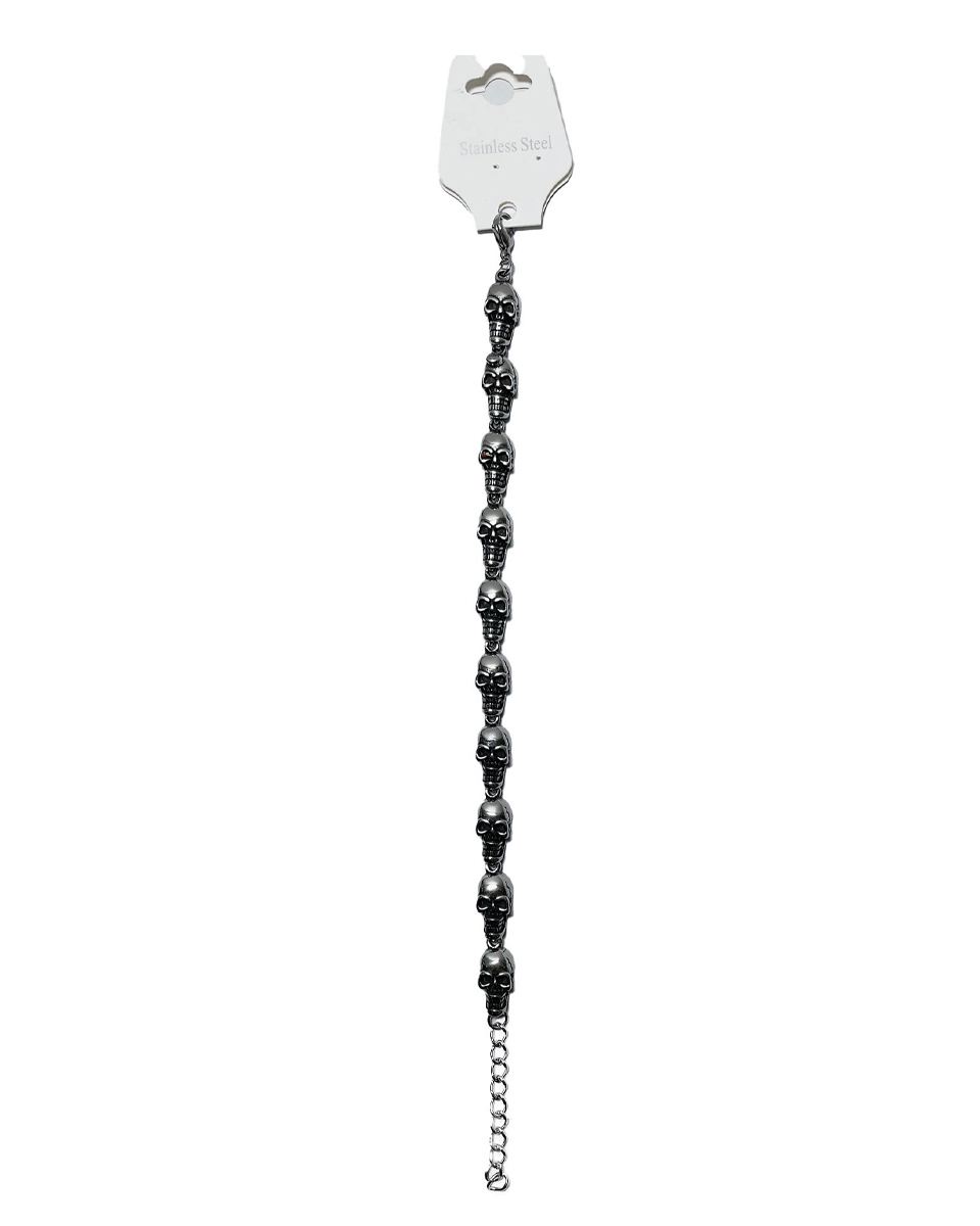 Ett metallarmband med dödskallar.