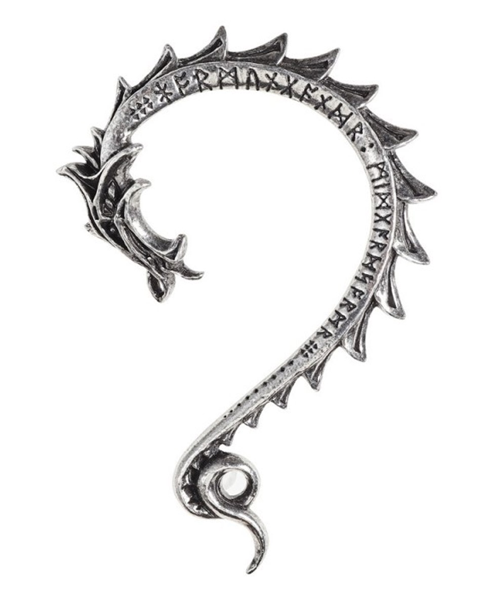 The Norse legend of Jormungandr, the 'Midgard' or World Serpent is the greatest ouroboros...unfurled. The popular Alchemy 'Jormungand' design is now available as an Ear-Wrap! A rune-inscribed Viking dragon ear-wrap with surgical steel ear-post