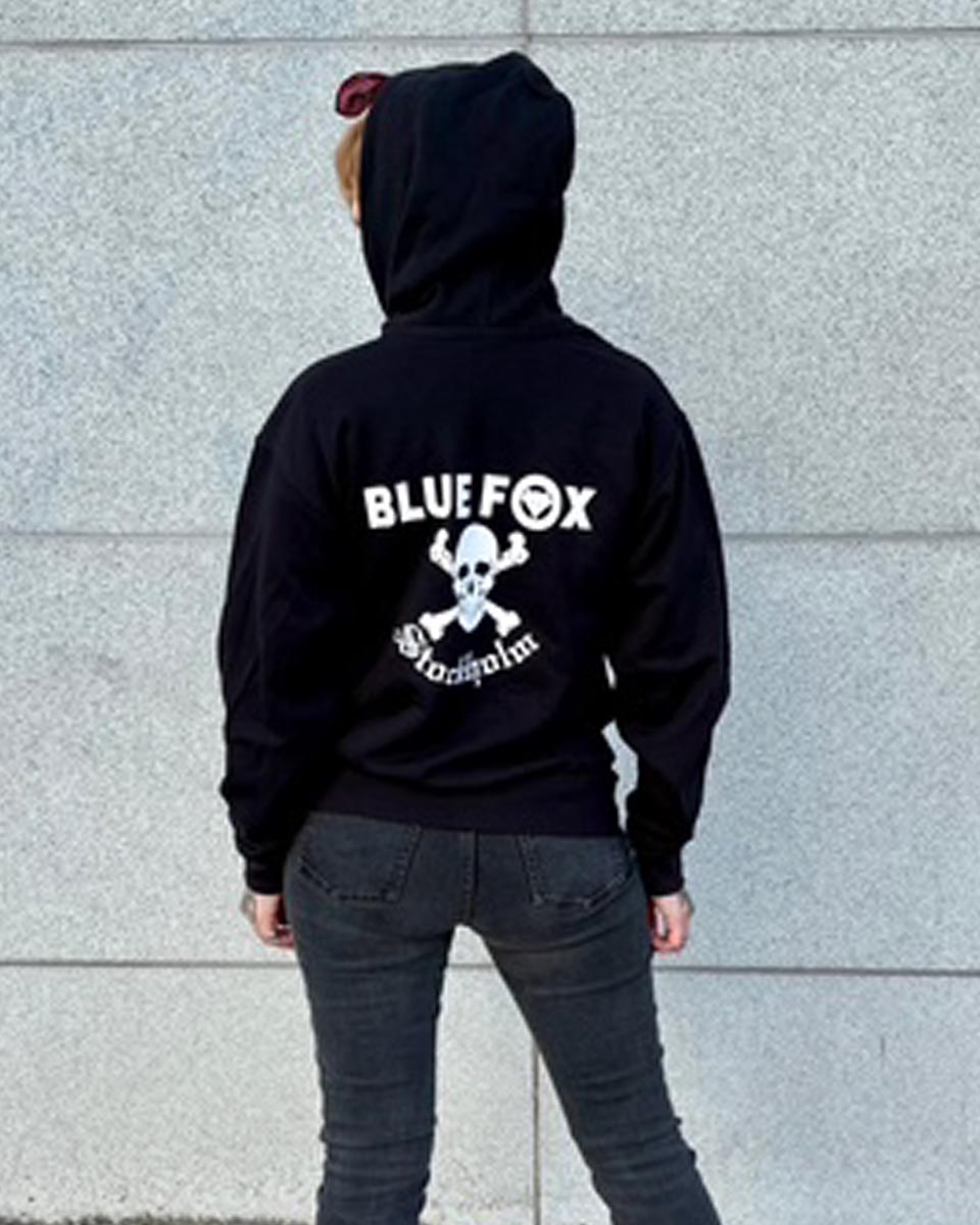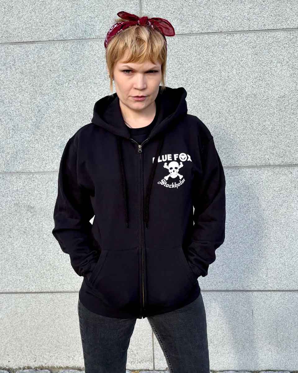 Den här luvtröjan med dragkedja och Blue Fox-tryck finns också i vår butik på Gamla Brogatan 27 i centrala Stockholm.