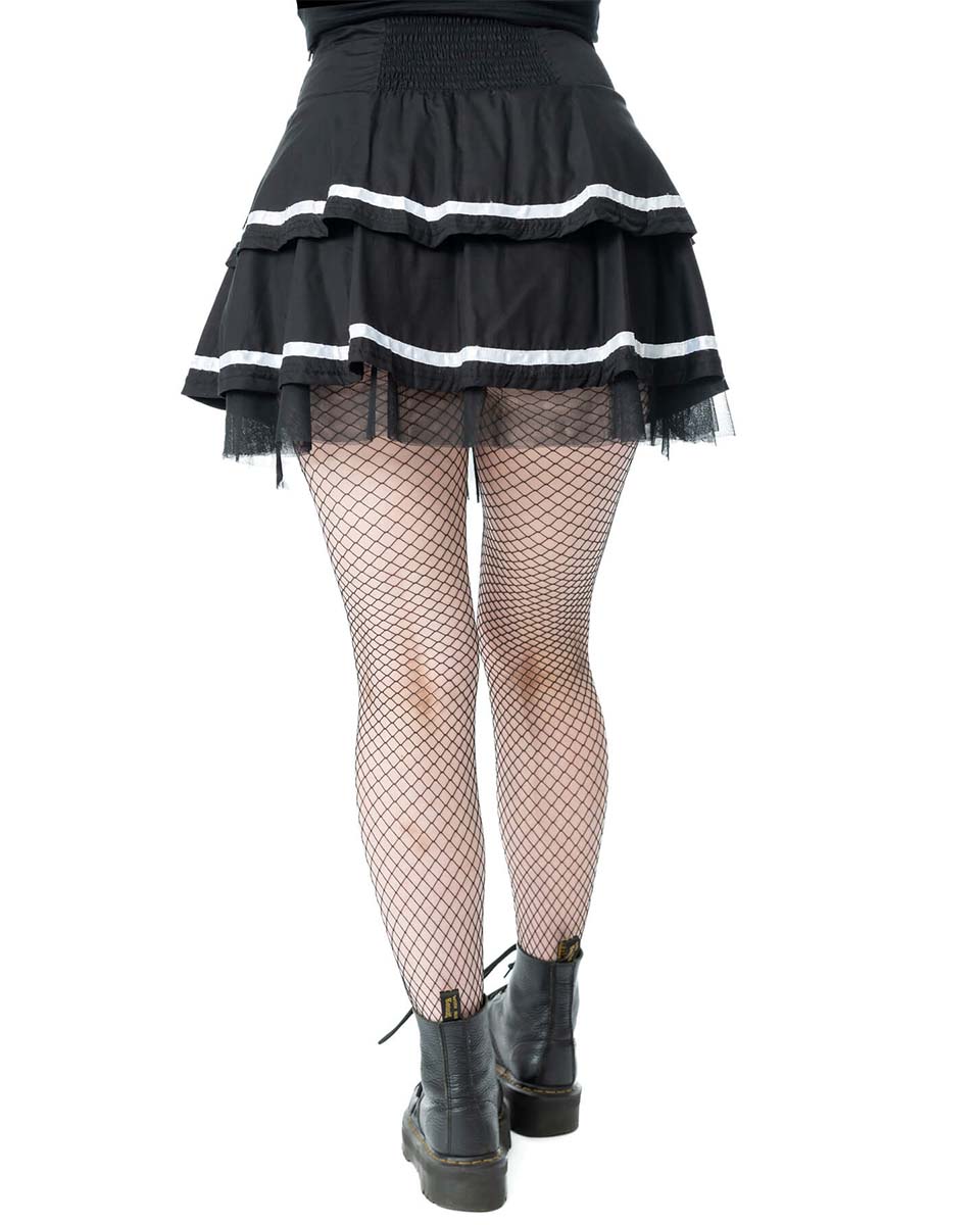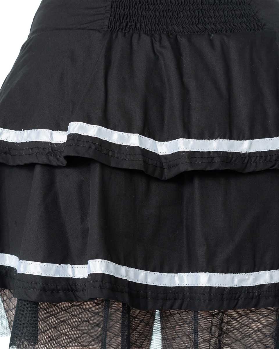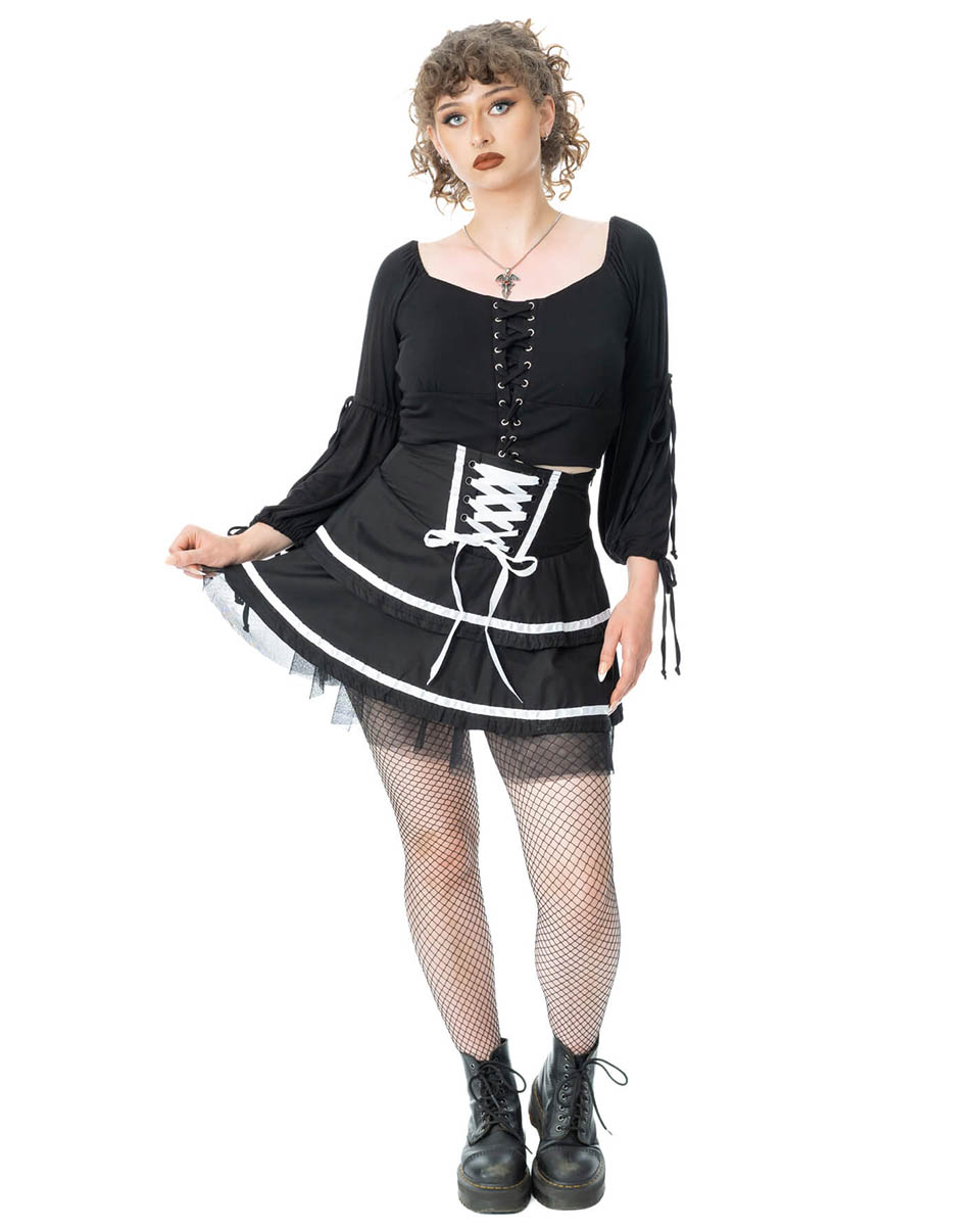 En kort svartvit kjol med snörning från Pozen industies.