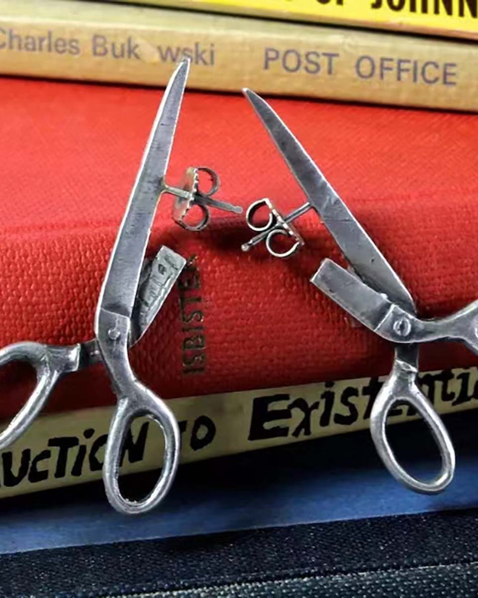 Silver colour skeleton earrings.