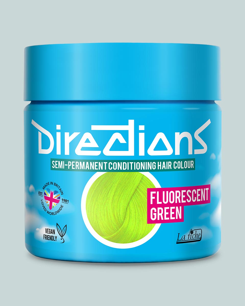 OBS! Fluorescent Green hårfärg från Directions är utvecklad för blekt hår, så vi rekommenderar verkligen att du bleker håret först för att få hårfärgen att fästa och bli den gröna färg som du önskar