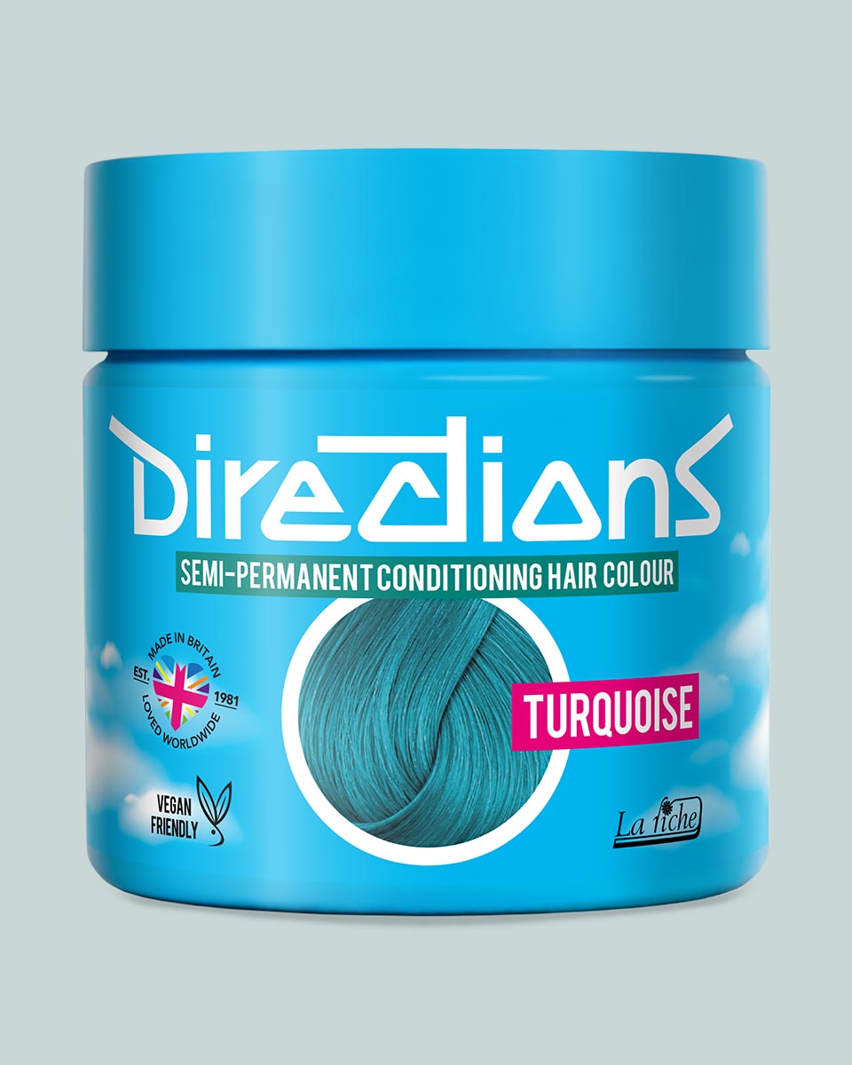 OBS! Turquoise hårfärg från Directions är utvecklad för blekt hår, så vi rekommenderar verkligen att du bleker håret först för att få hårfärgen att fästa och bli den turkosa färg som du önskar