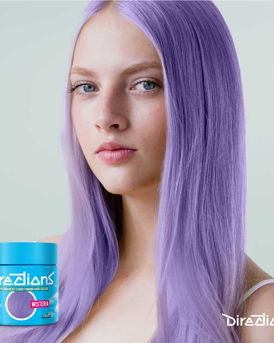 OBS! Wisteria hårfärg från Directions är utvecklad för blekt hår, så vi rekommenderar verkligen att du bleker håret först för att få hårfärgen att fästa och bli den lila färg som du önskar