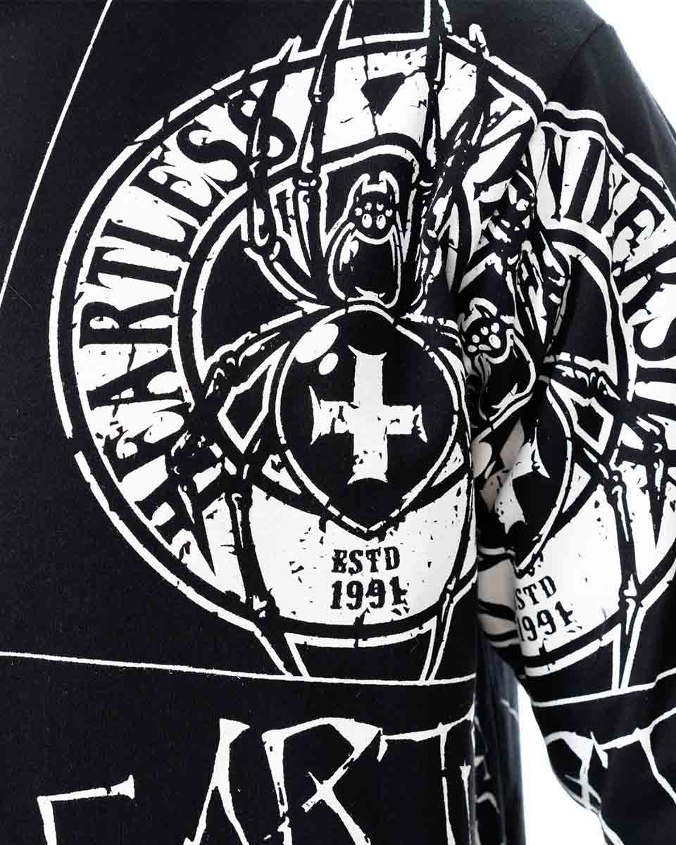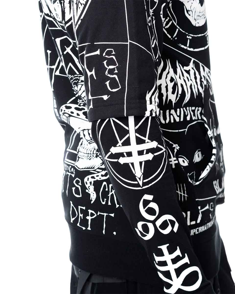 Black hoodie from the popular brand Heartless with hood and lots of prints.