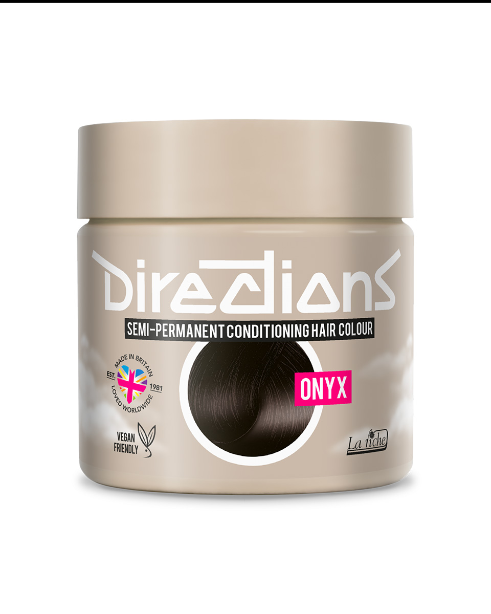 OBS! Onyx hårfärg från Directions är utvecklad för blekt hår, så vi rekommenderar verkligen att du bleker håret först för att få hårfärgen att fästa och bli den svarta färg som du önskar